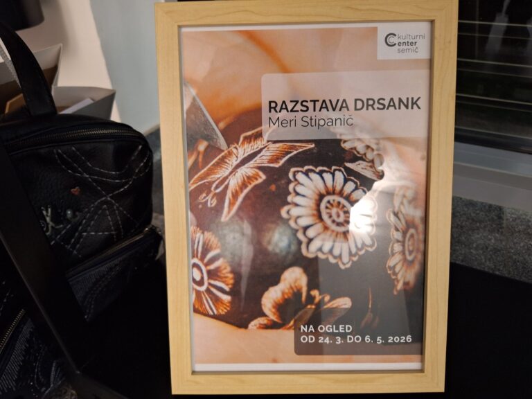 Rokodelci in likovni umetniki DU Semič na otvoritvi razstave “Ko roke ustvarjajo lepoto” v KC Semič. Razstava bo na ogled do 18. feb. 2026.