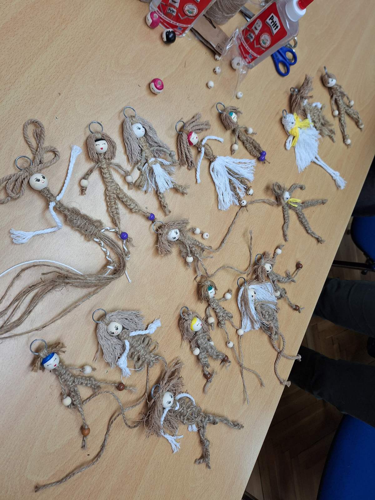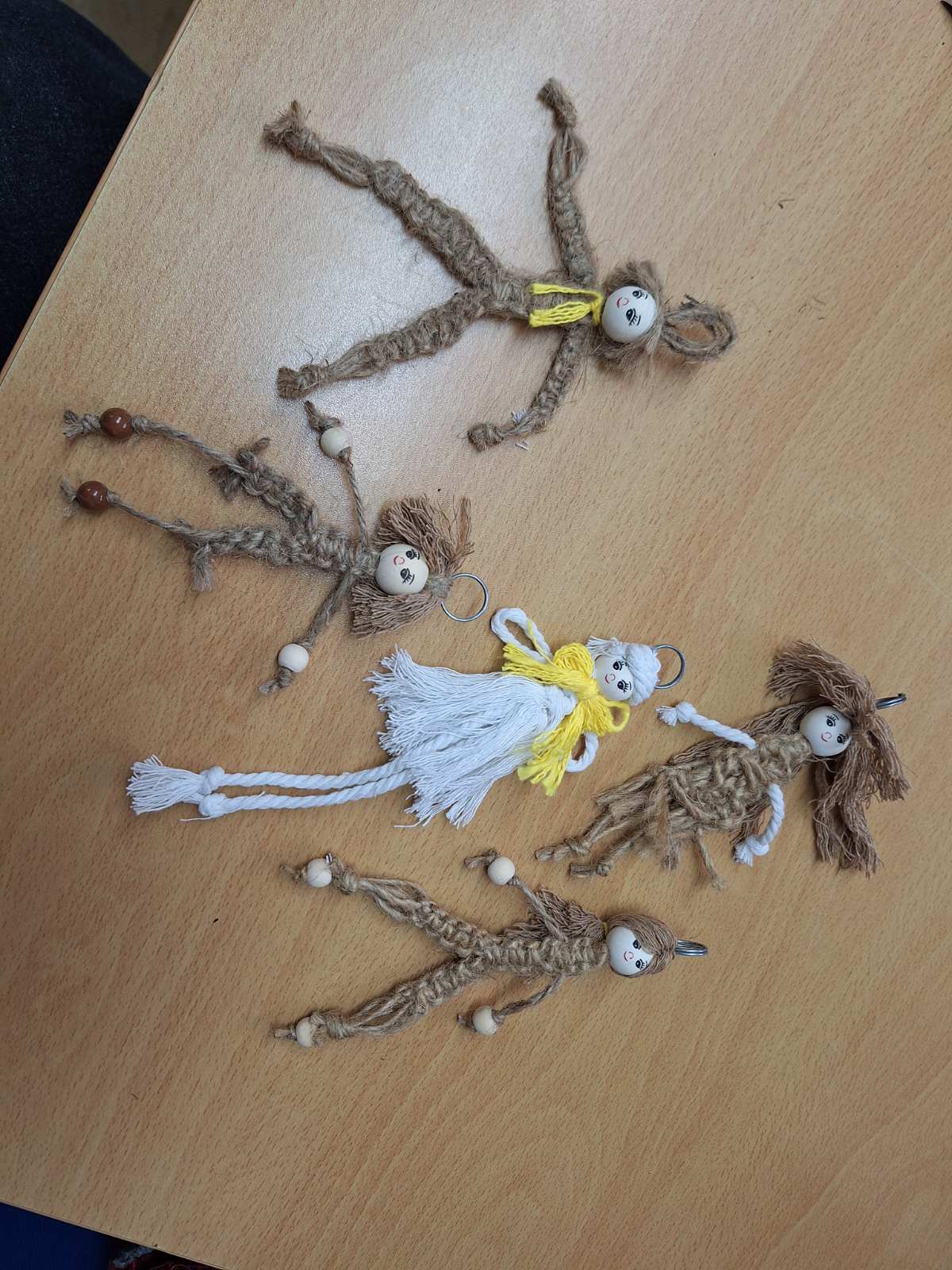 Rokodelke so tokrat izdelovale obeske za ključe v makrame tehniki.
