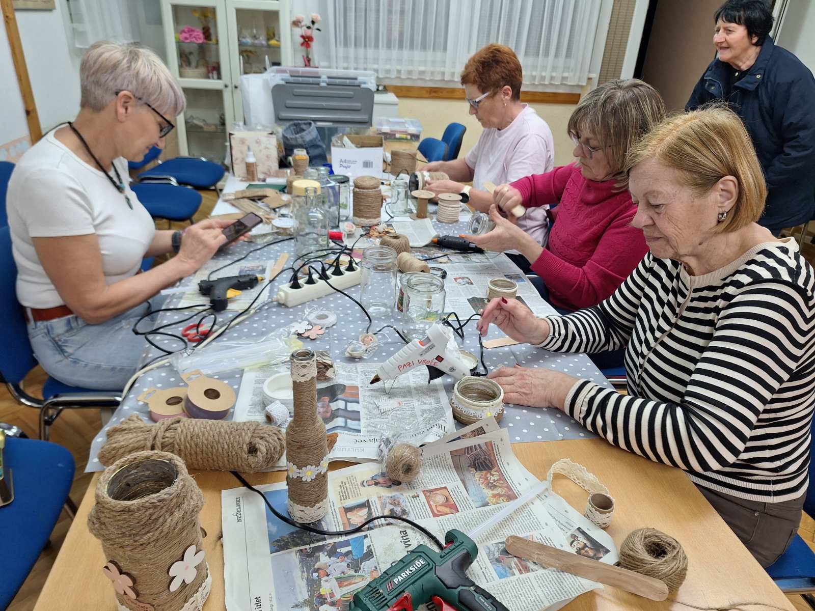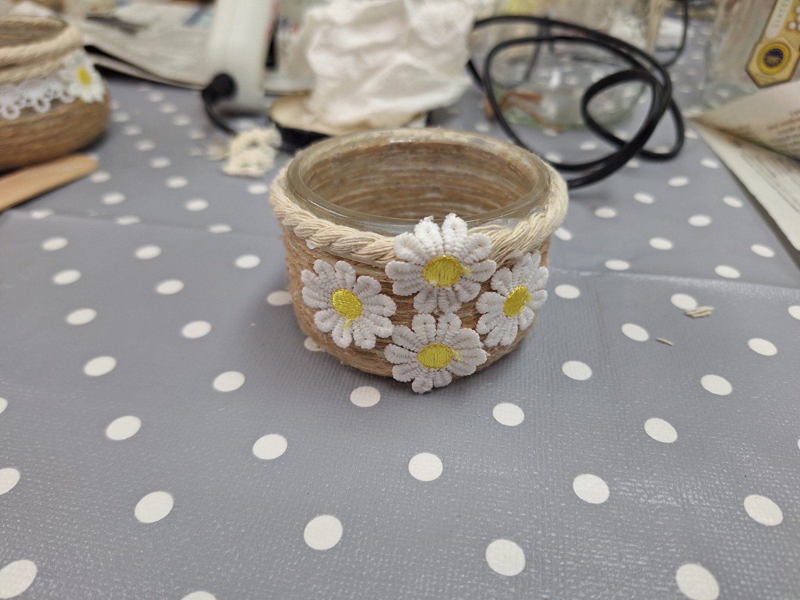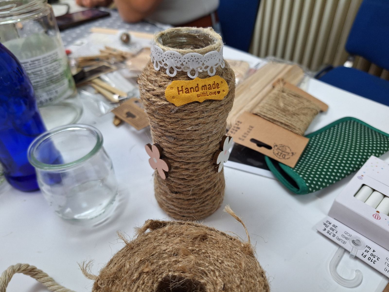 Okraševanje kozarcev in steklenic za vaze, šatulje…z vrvjo, žaklovino, lesenimi okraski…