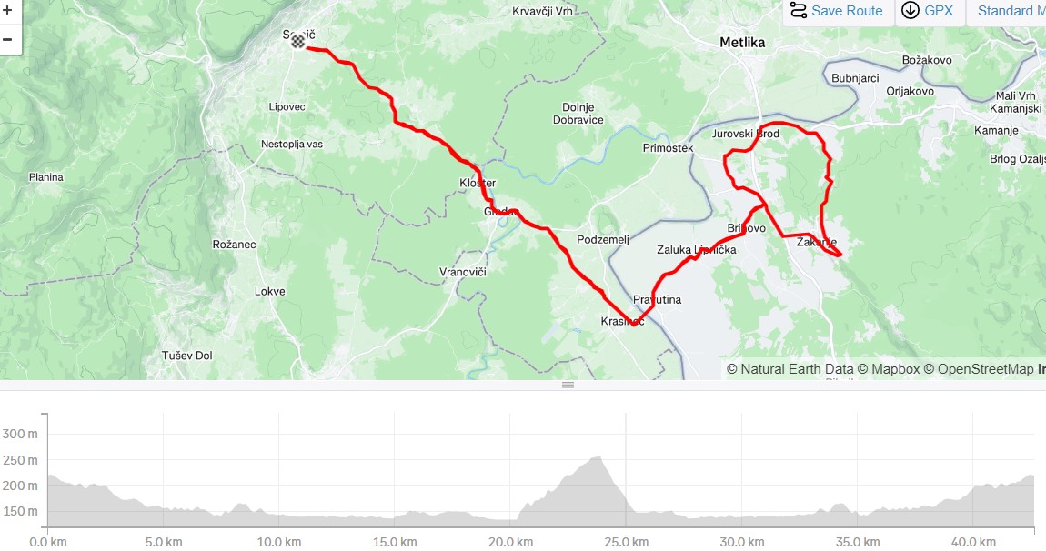 S kolesi po Beli krajini in še malo na Hrvaško. Trije smo bili na žgance, ostali so si pomagali z elektriko. Prevozili smo 42 km, pridobljena višina 416 m, čas premikanja 2 uri.