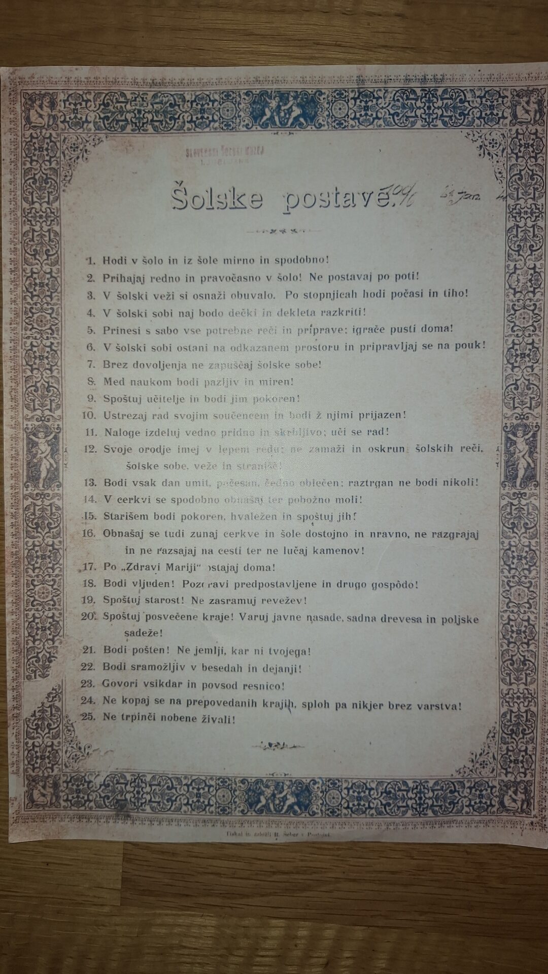 Z vlakom v Ljubljano. Ogledali smo si Šolski muzej in prisostvovali pouku, kot je bil okrog leta 1907. Oblekli smo se tako, kot so se učenke in učenci tistega časa. Stroga gospodična učiteljica nas je seznanila s pravili obnašanja. Za domov pa smo dobili list s šolskimi postavami.