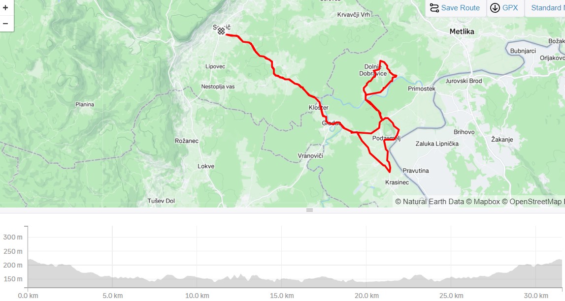 Prevozili smo 31,5 km, čas premikanja 1h 31m, pridobljena višina 353 m.